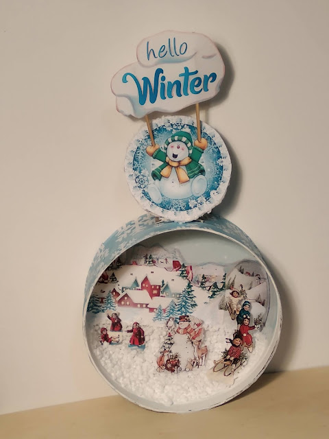 Y se me ocurrió hacer un diorama para recibir al invierno y como decoración para toda esta estación. Una escena invernal de un pueblecito tranquilo, con un montón de actividades para todos sus habitantes.